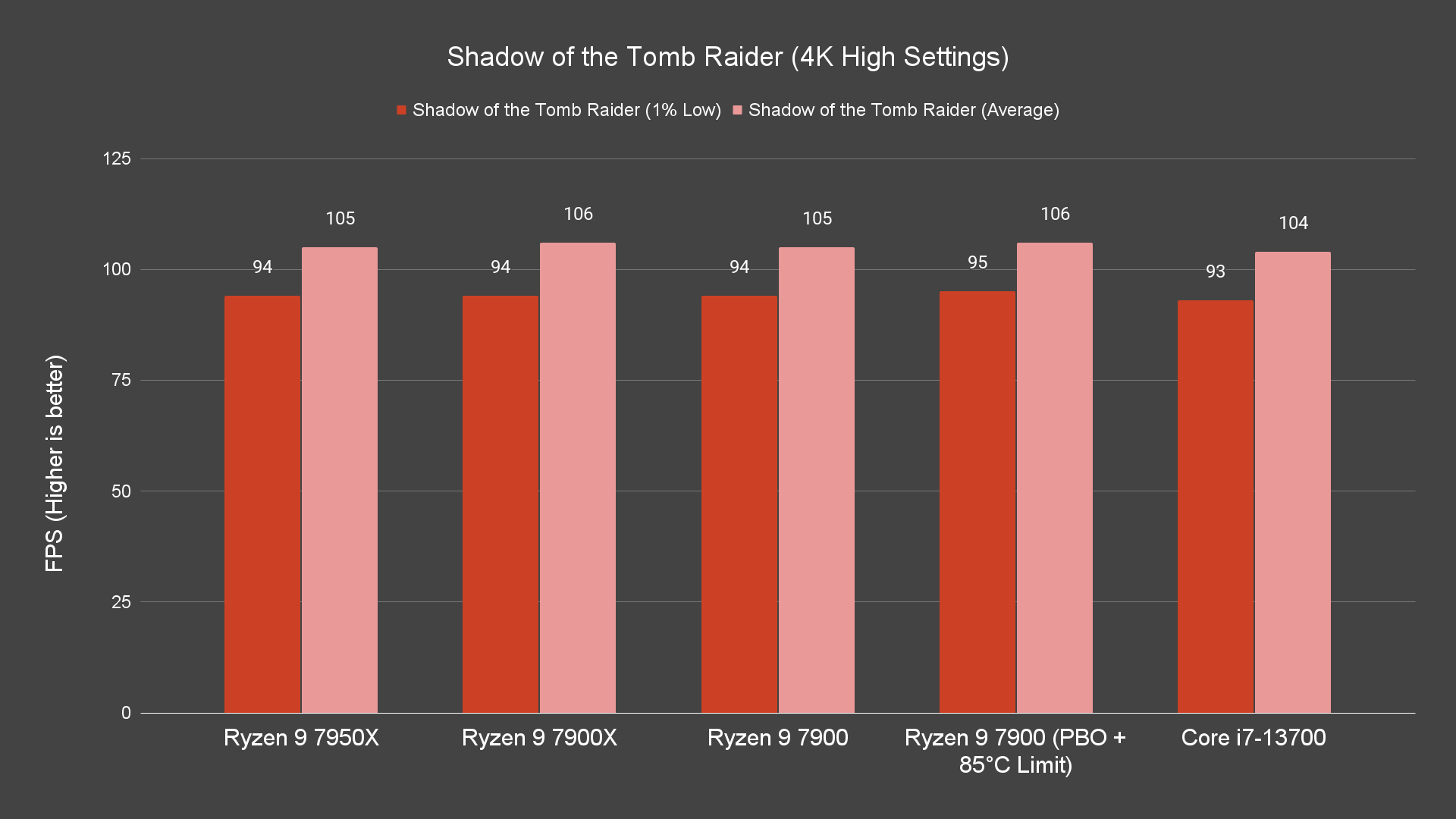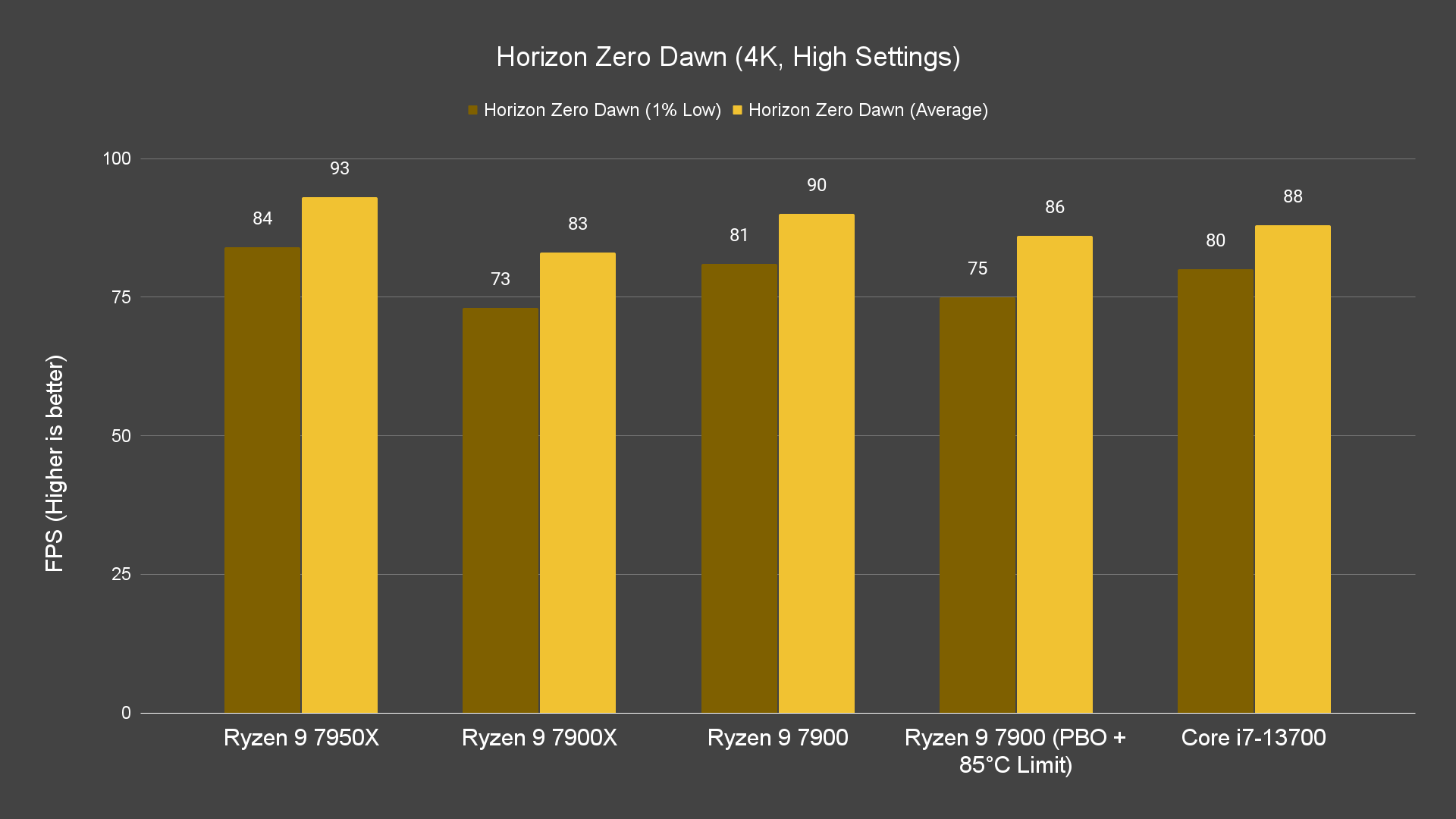Starting off with games benchmark, we’re actually impressed by just how well the Ryzen 9 7900 can actually perform, given that we’re running it on a Wraith Prism. Even without PBO enabled, it can perform just as well as the Ryzen 9 7900X across all resolutions on certain titles on stock settings, and enabling PBO will give you a bit more boost on the frames depending on the titles. The best thing about this is that this behavior can be seen not only on 1080p resolution but on both 1440P and 4K resolution as well.