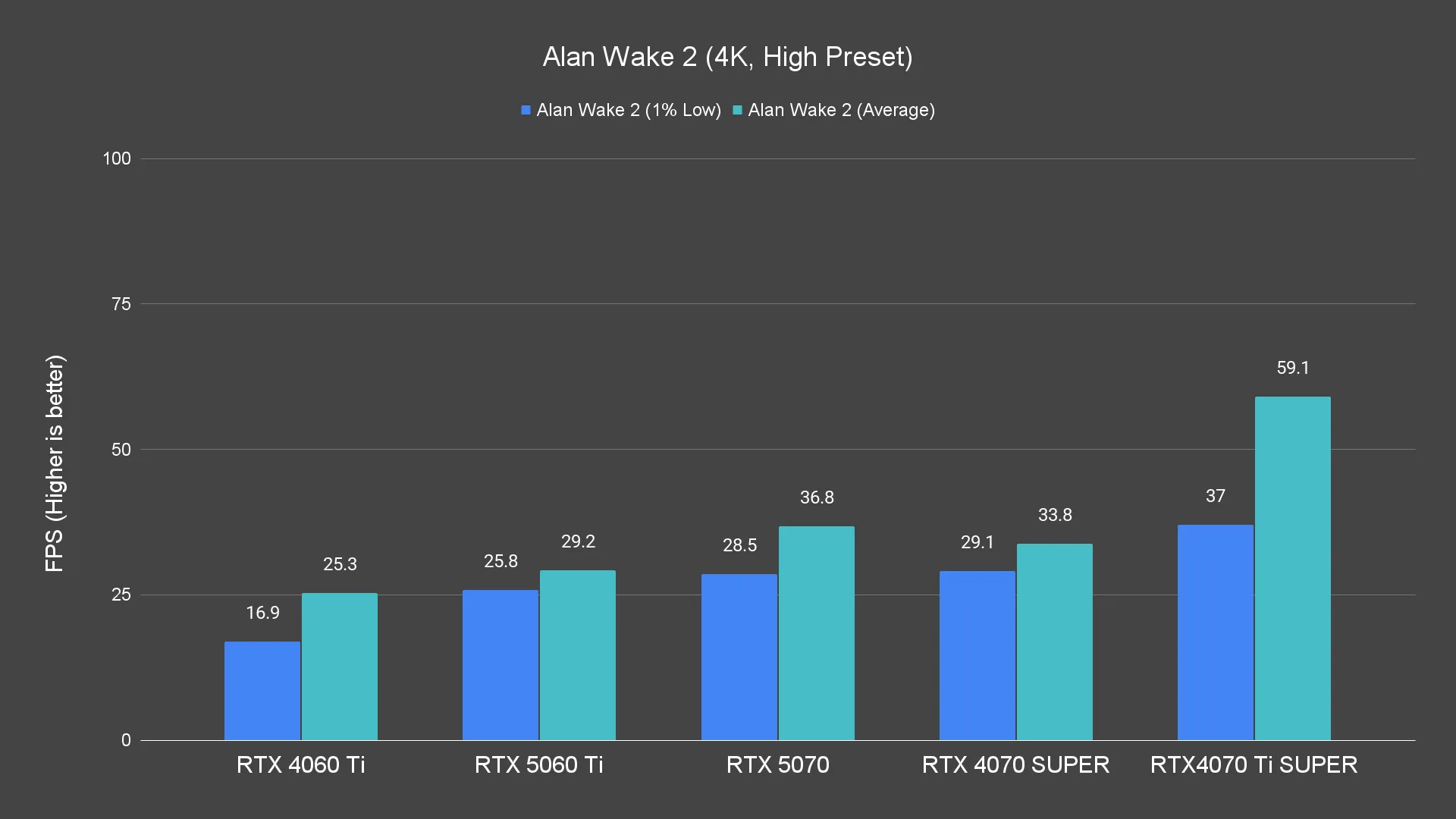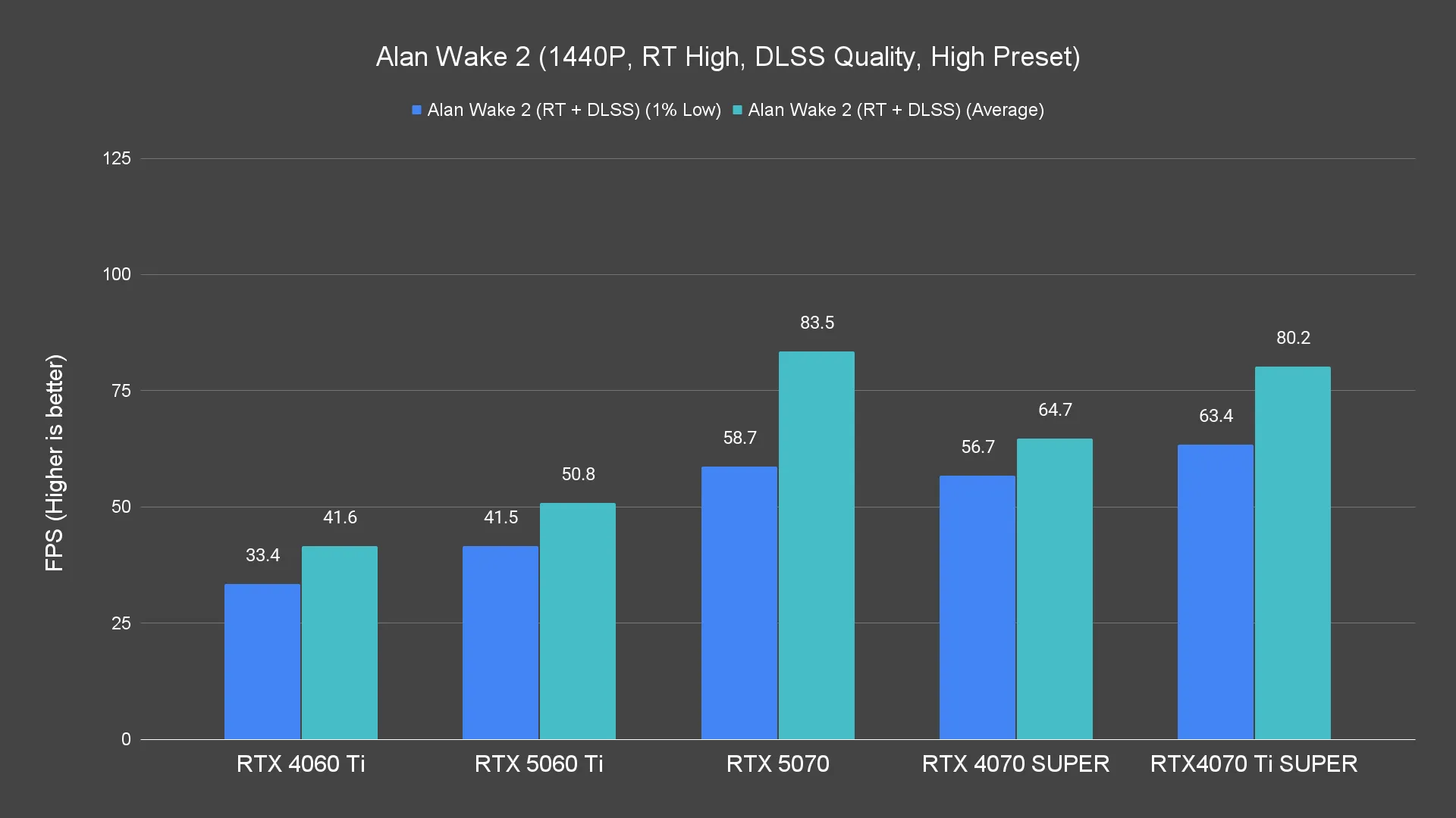When bumped up to 1440p, the card holds its own quite well. Most titles still hit or exceed 60fps, except for heavier hitters like Alan Wake 2, where you may need to scale down settings slightly.