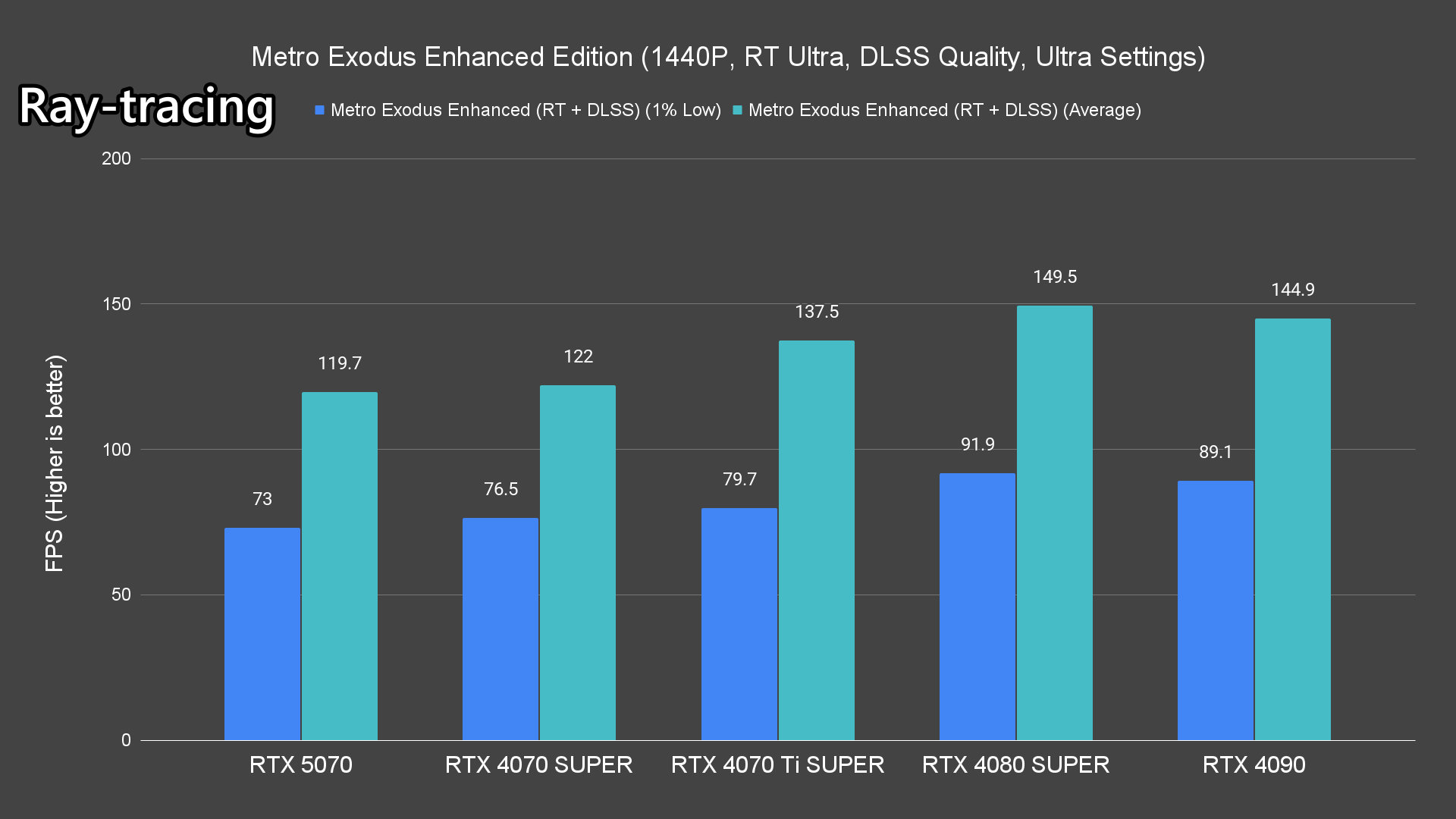 At 1440p, it will once again match or outperform the RTX 4070 Ti SUPER, except in Metro Exodus. Compared to the RTX 4070 SUPER though, the gap is more pronounced.