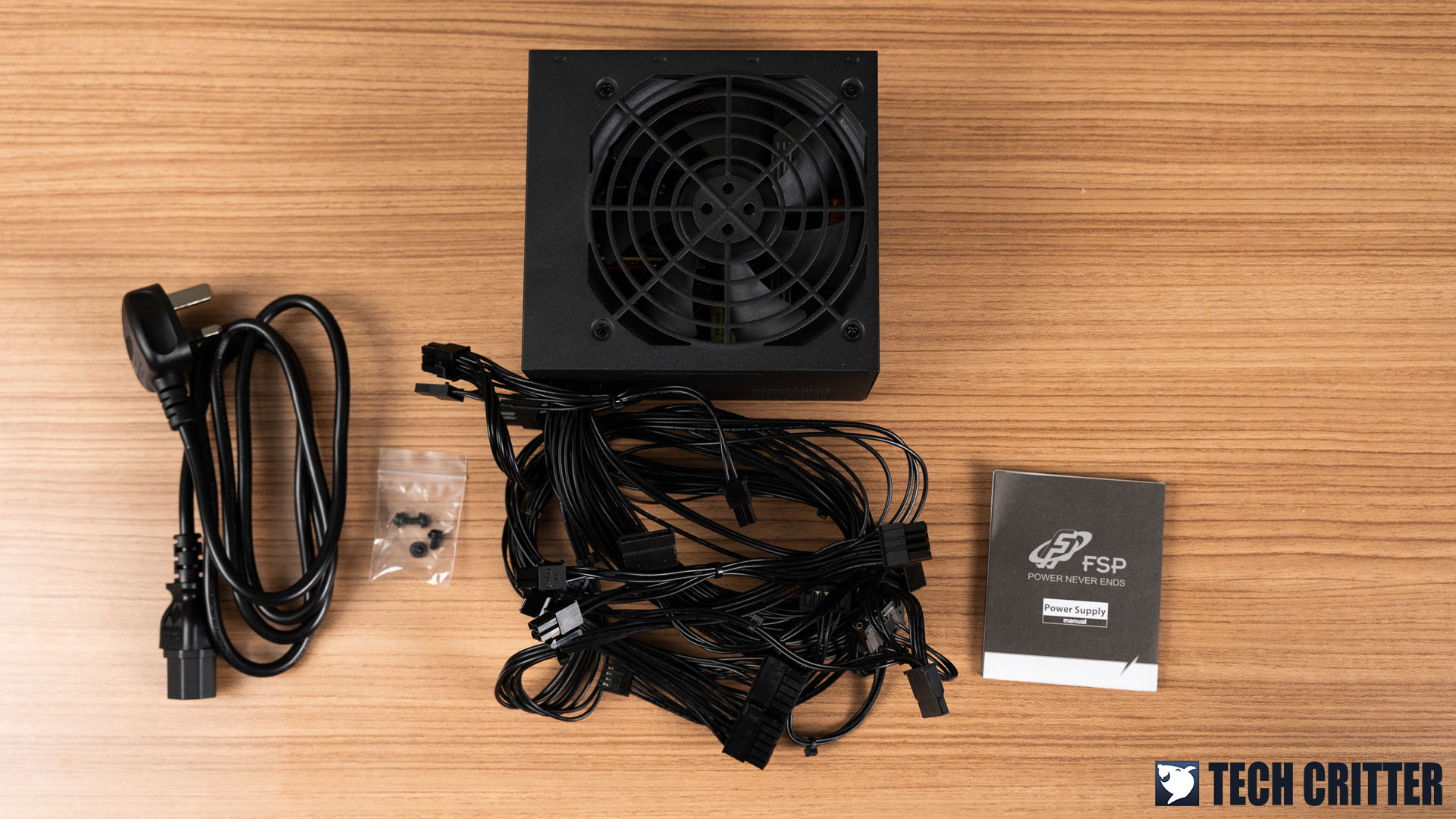 Inside the box, you’ll find the user guide booklet, some screws, a power cord, and of course, the power supply unit. FSP did wrap the power supply unit properly, of course, we just took off the plastic cover for the photos.