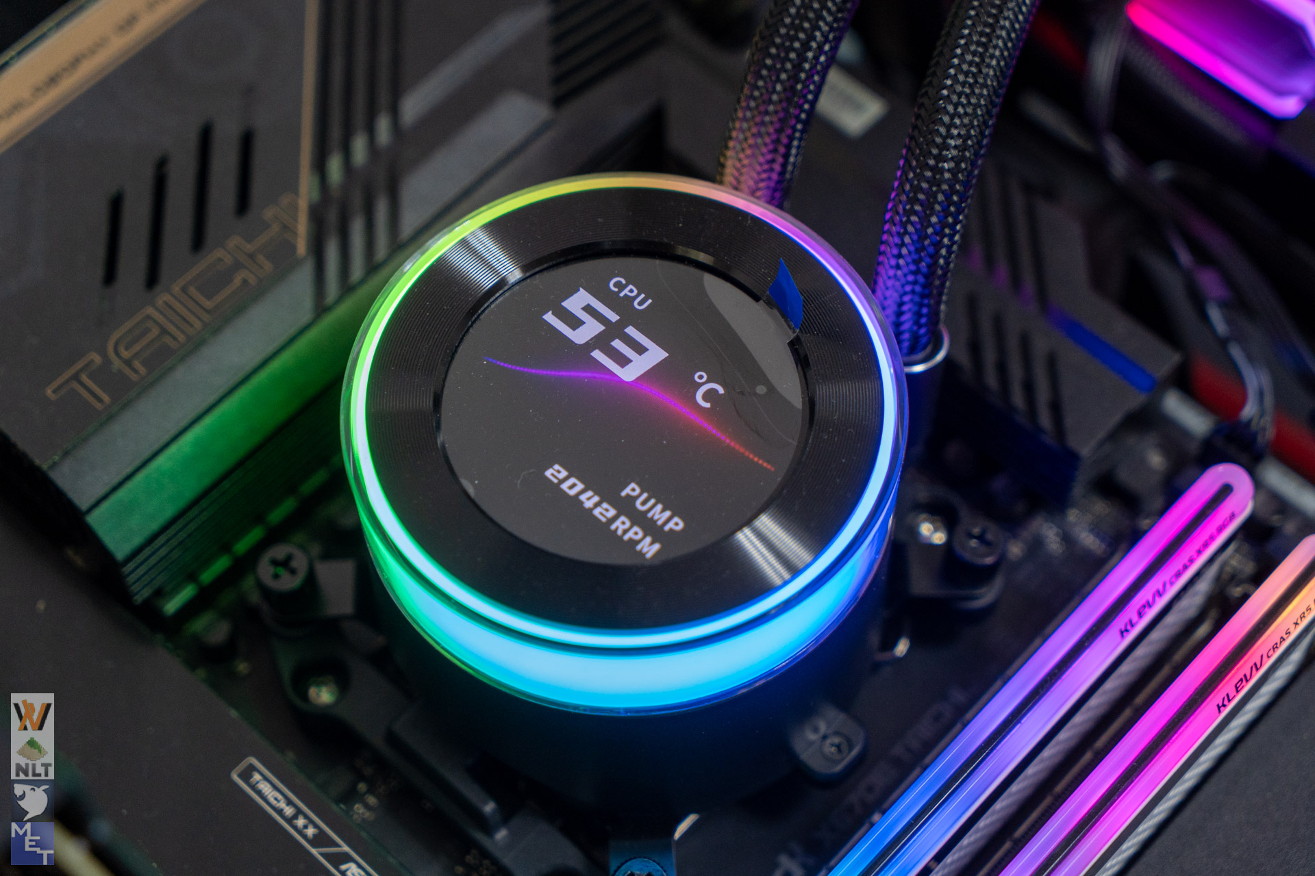 Dominating the CPU block is a 2.1-inch circular IPS LCD screen. This display is vibrant, boasting a 480×480 resolution and 500-nit brightness, ensuring your system stats, custom images, or animated GIFs remain sharp and visible even in well-lit environments.