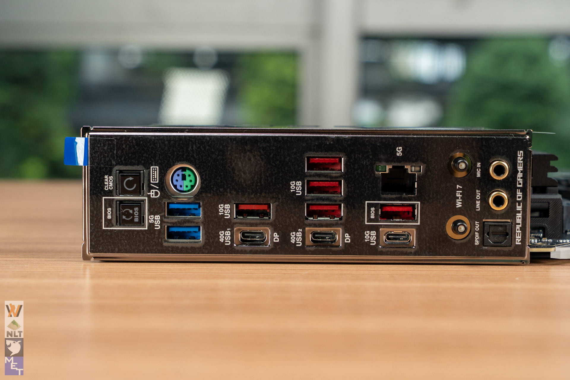 On the rear I/O, ASUS went all out. You’ll find dual USB4 40Gbps Type-C ports, five 10Gbps USB Type-A ports, one 10Gbps USB Type-C port, two 5Gbps USB ports, and even a legacy PS/2 port for peripherals. For display output, there is an HDMI port. Networking is well covered with a 5Gb Ethernet port and the latest Wi-Fi 7 module for fast wireless connectivity. Audio is handled through two audio jacks, and BIOS updates are made easy with the dedicated BIOS FlashBack button.