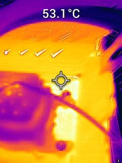 To cross-check, I used a thermal imaging camera and saw two VRM heatsink zones registering 61.1°C and 53.1°C. These results show that the cooling solution is efficient and consistent, ensuring stable operation even during overclocking sessions.
