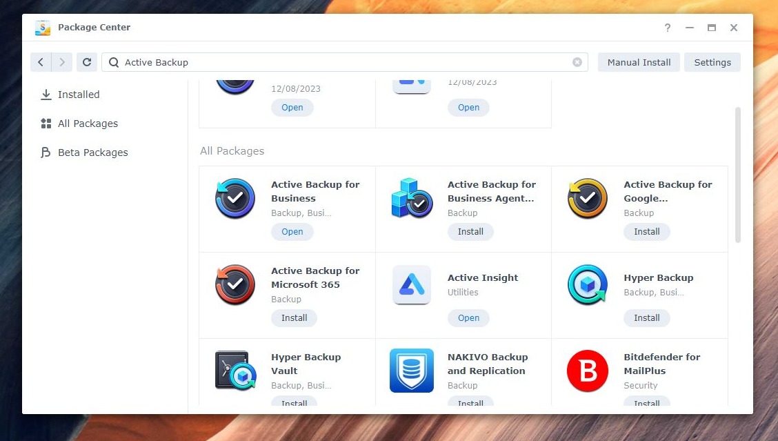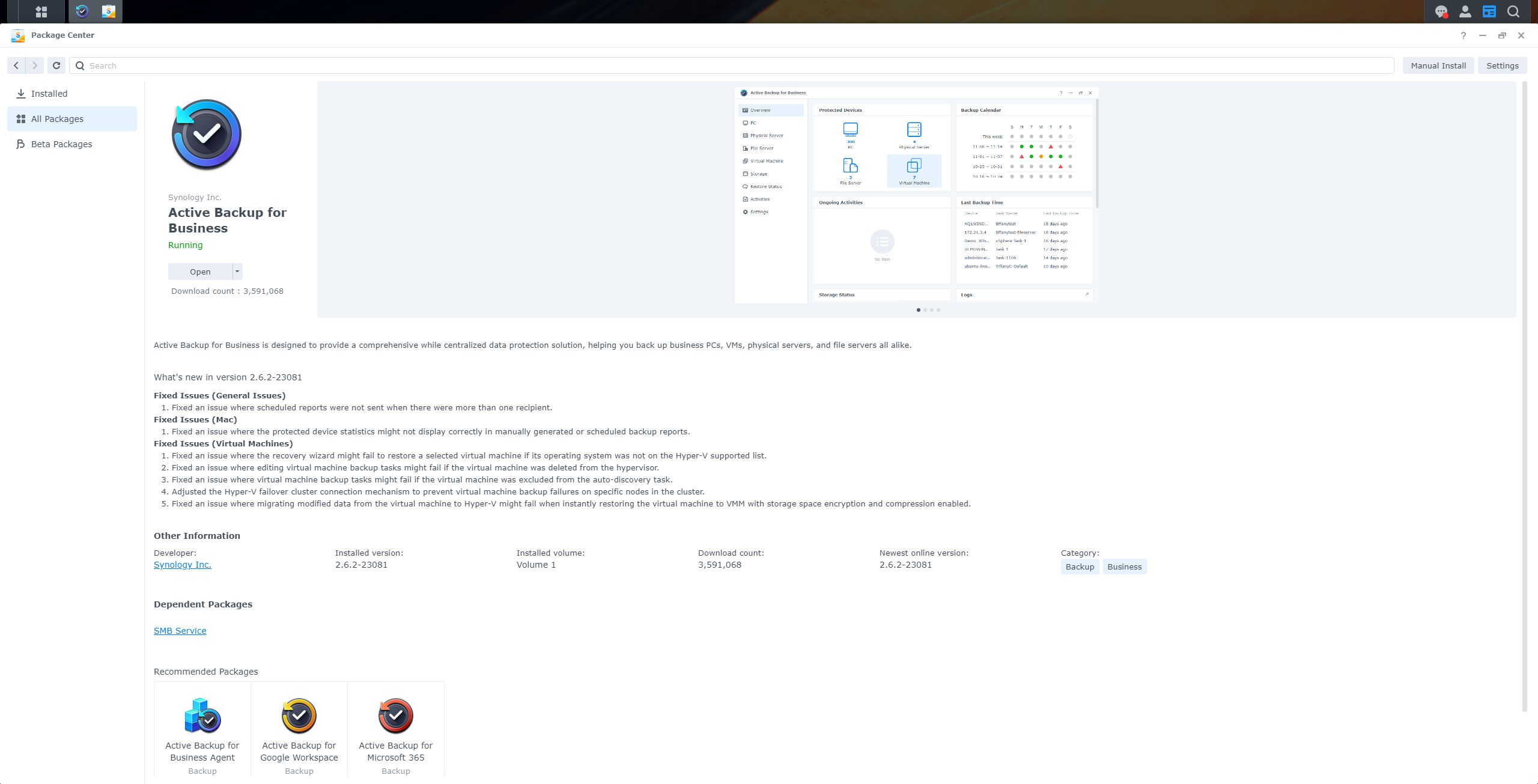 The software is easy to install and activate via the Package Center. There are a couple of different packages available that are related to Active Backup Suite: