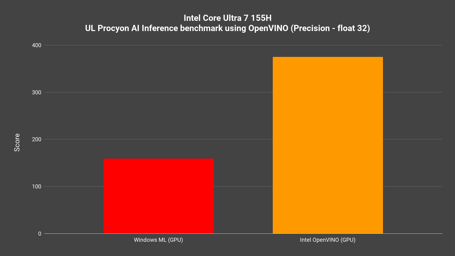 Now let’s switch to the GPU. This time, OpenVINO doubles the performance of Windows ML.