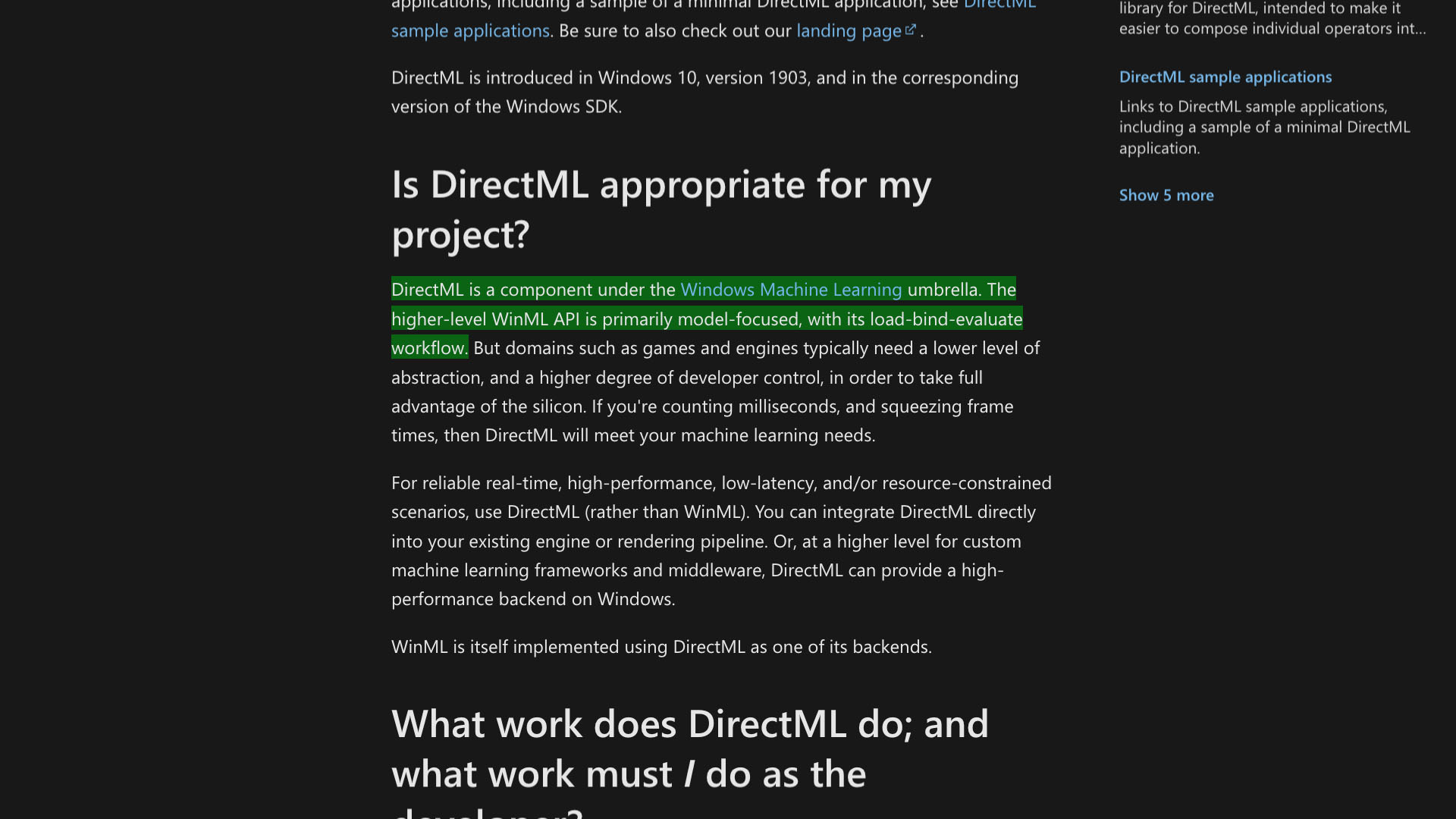 Windows ML is an API built directly into Windows 11 and it’s open to any hardware maker and software programmer to use. You might have heard of the name “DirectML” but that’s a component under the Windows Machine Learning umbrella.