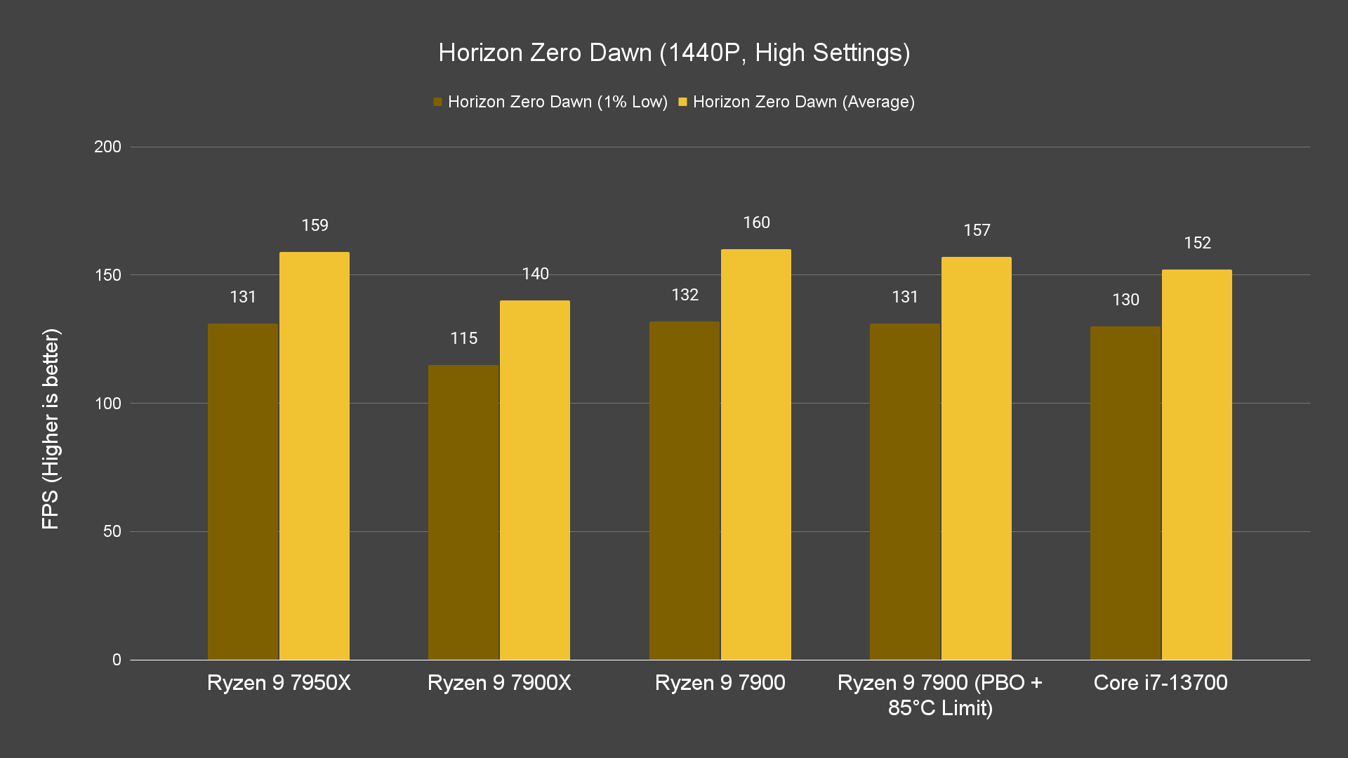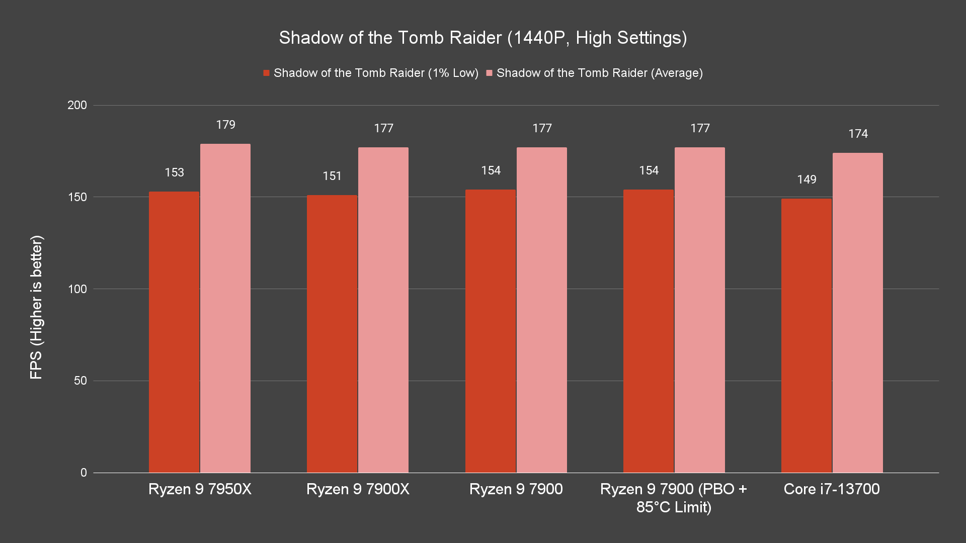 Starting off with games benchmark, we’re actually impressed by just how well the Ryzen 9 7900 can actually perform, given that we’re running it on a Wraith Prism. Even without PBO enabled, it can perform just as well as the Ryzen 9 7900X across all resolutions on certain titles on stock settings, and enabling PBO will give you a bit more boost on the frames depending on the titles. The best thing about this is that this behavior can be seen not only on 1080p resolution but on both 1440P and 4K resolution as well.