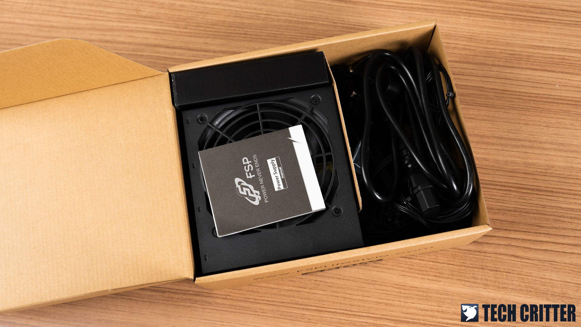 Inside the box, you’ll find the user guide booklet, some screws, a power cord, and of course, the power supply unit. FSP did wrap the power supply unit properly, of course, we just took off the plastic cover for the photos.