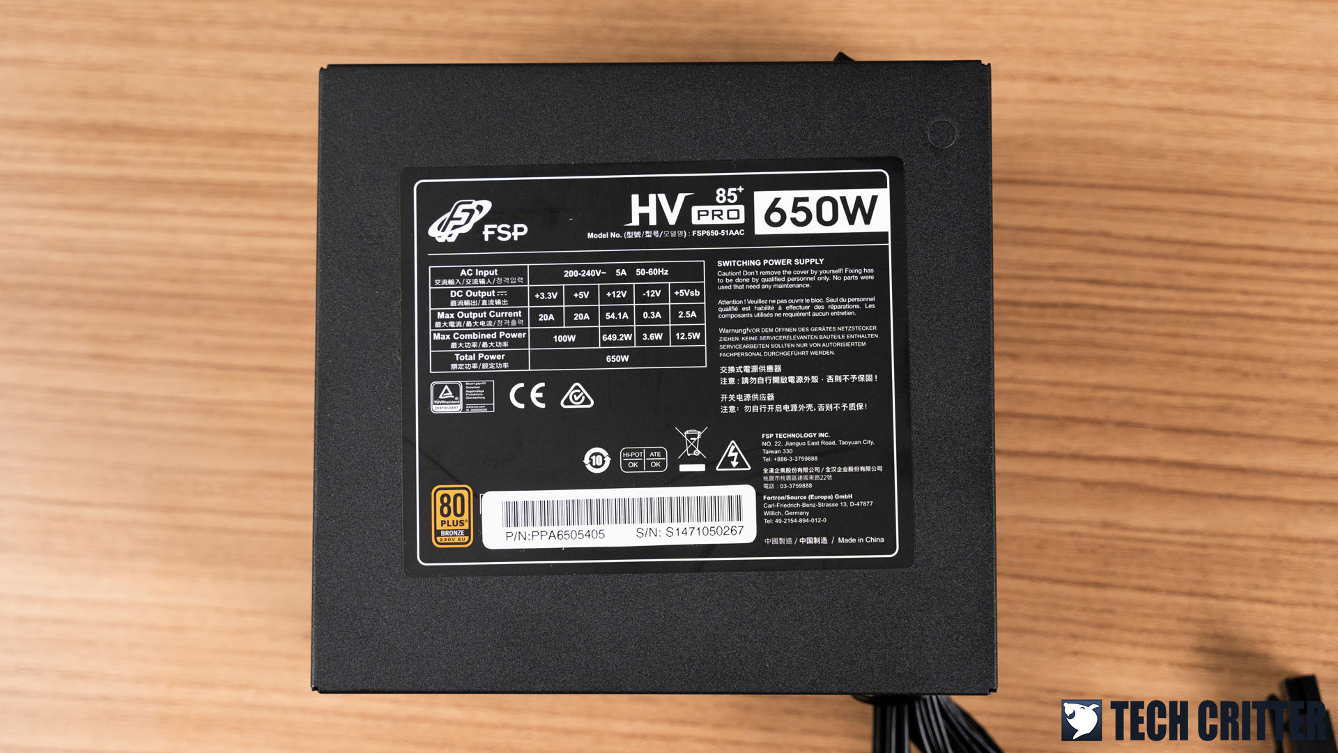 | Power Supply | FSP HV PRO 85+ 650W |
