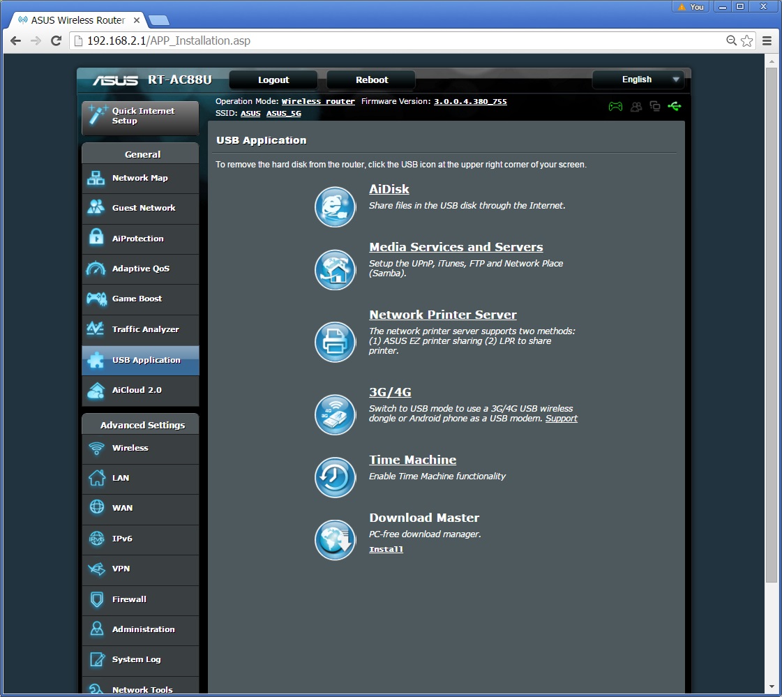 Need to manage your USB devices connected to the RT-AC88U? Be it USB storage devices, network printer server, 3G/4G USB dongle, ASUS got it covered with the USB Applications.