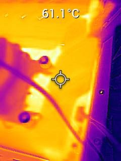 To cross-check, I used a thermal imaging camera and saw two VRM heatsink zones registering 61.1°C and 53.1°C. These results show that the cooling solution is efficient and consistent, ensuring stable operation even during overclocking sessions.